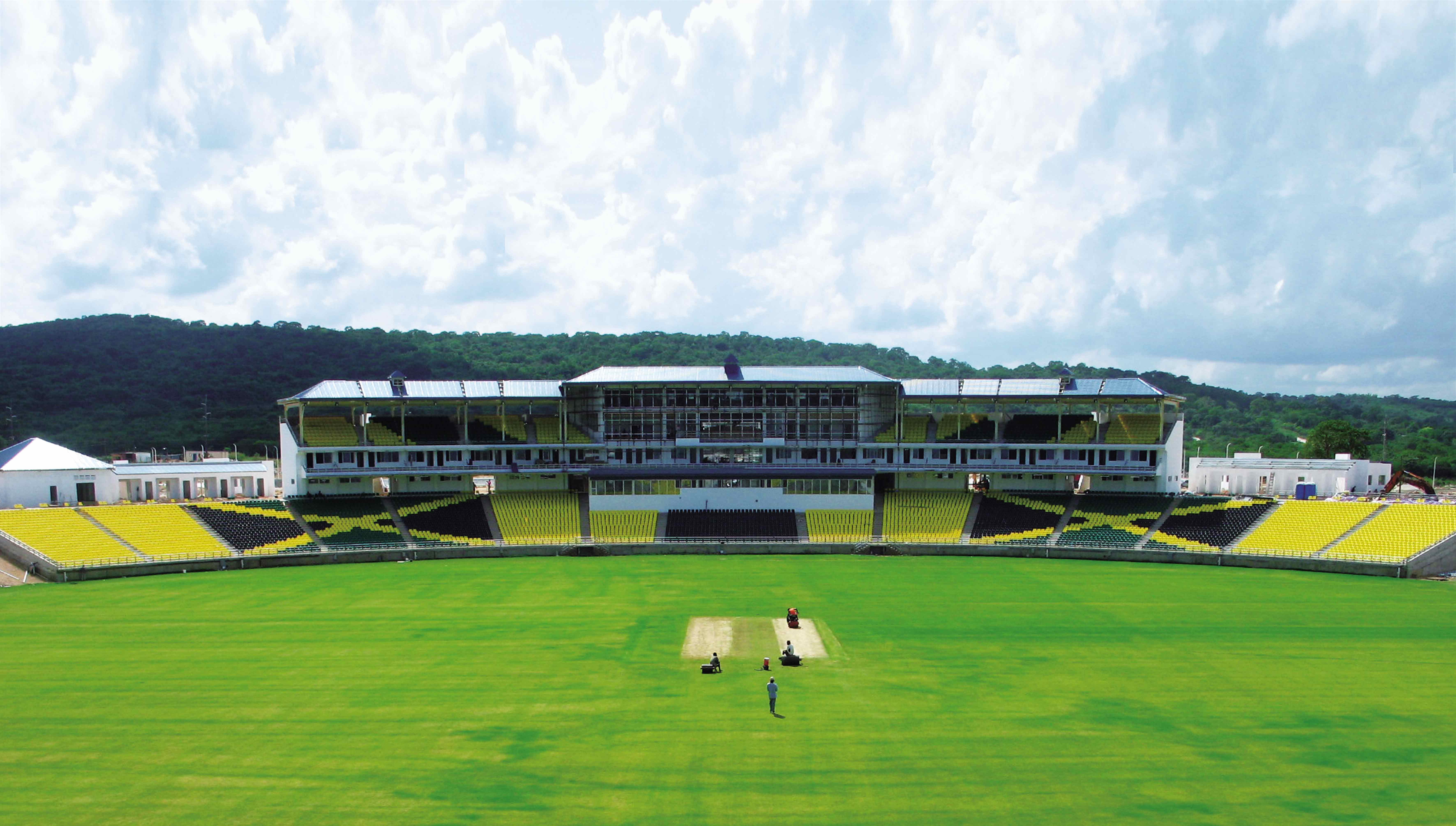 牙買加闆球場占地約162,000平方米,總建築面積約15,800平方米。體育場内有10,000個固定座位,10,000個開放座位。2005年11月開工,2006年12月竣工。