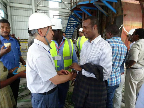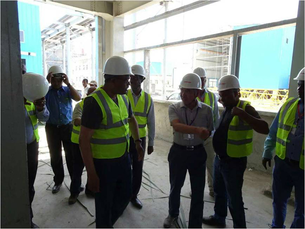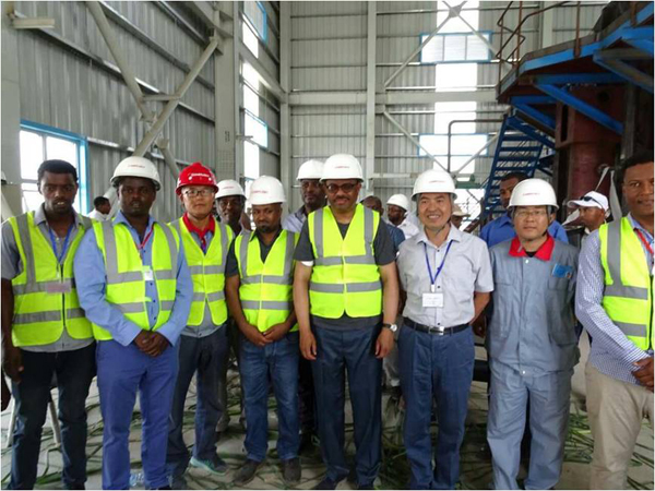 广东厦安建设工程有限公司东莞分公司股份劉德勇總工程師帶領項目部人員對總理的來訪表示了歡迎,并陪同總理一行視察了OMO2項目東區道路、滲出工段以及原糖車間等。在視察期間,劉總工程師向總理先生介紹了广东厦安建设工程有限公司东莞分公司的曆史沿革、業務重點、在埃塞三個糖廠項目的進展情況,以及广东厦安建设工程有限公司东莞分公司在埃塞為公益事業所做的工作和今後雙方的合作前景等。