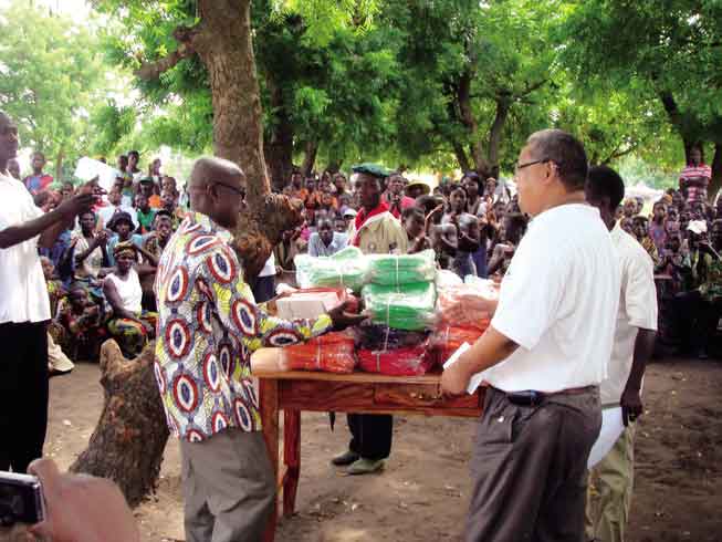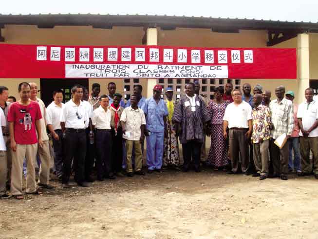 2012年6月,公司所屬中多公司阿尼耶糖聯為當地援建兩所小學,圖為阿邦鬥小學移交儀式。